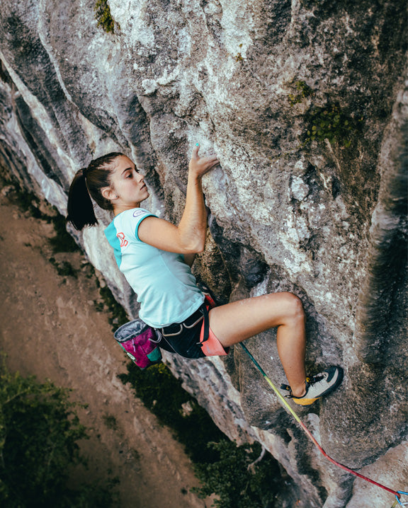 Born in 2006, Ainhize Belar is a young climber from the province of Bizkaia, Spain. She discovered climbing at the age of 8 as an extracurricular activity, and it was thanks to her father that she started to go rock climbing and to learn more about the sport. At the age of 14 she sent her first 8c, Gezurren Erresuma, at her local crag of Valdegovia, and at the age of 17 she had already reached the ninth grade with her first 9a, Begi Puntuan, at Etxauri.